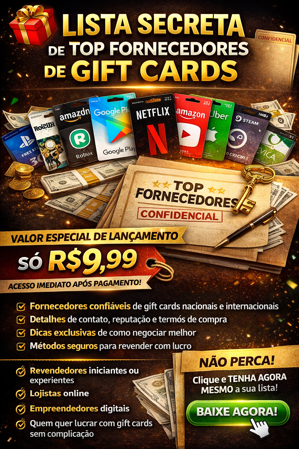 LISTA SECRETA TOP FORNECEDORES DE GIFT CARD Super lista ! com centenas de fornecedores de Gift Card! Fornecedores do mundo todo! • conteudo original • Sites legítimos. • Arquivo em PDF, totalmente em português.